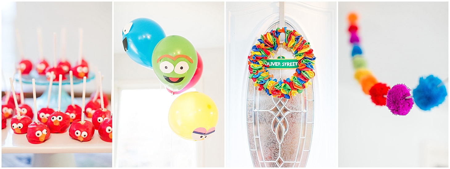 I wanted it to be a fun party, but really, I just wanted Ollie to be surprised by all of his favorite characters in his house! We couldn’t let him in the back half of the house for a week or so because he spotted a giant Elmo and had a complete meltdown that he wasn’t allowed to have it yet! Poor guy! It was all totally worth it to see his face as he realized everything had been transformed to look like Sesame Street. I think my favorite thing I made had to be the Cookie Monster toss! He’s still playing with it every day! Okay, it might be tied with the balloon wreath :] My sister helped with some of the big details the week before (tracing the giant elmo and cookie monster) and she helped me pull together all the food on the day of! We got a little delirious making it all happen, but we got it all done! (to be fair, we were done six minutes after the party started…but hey! it got done!)
